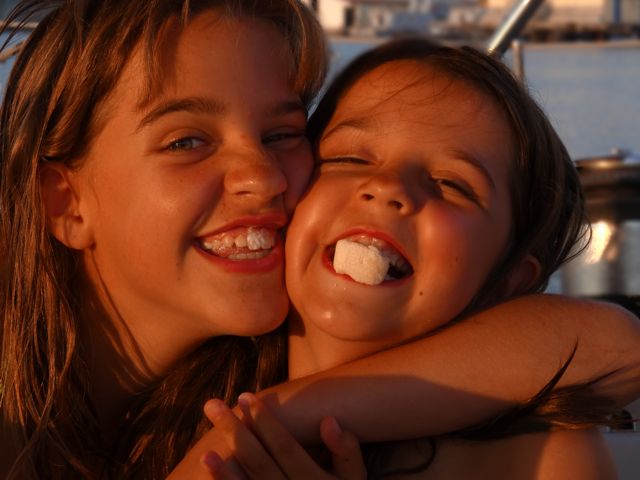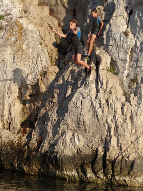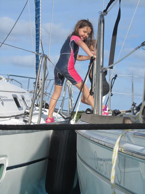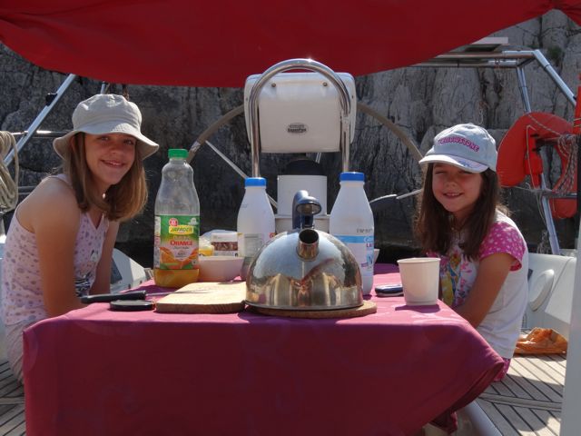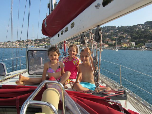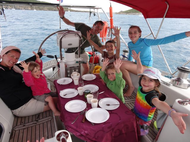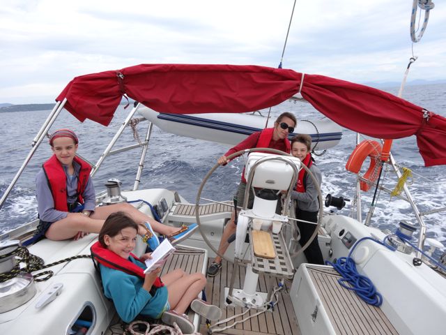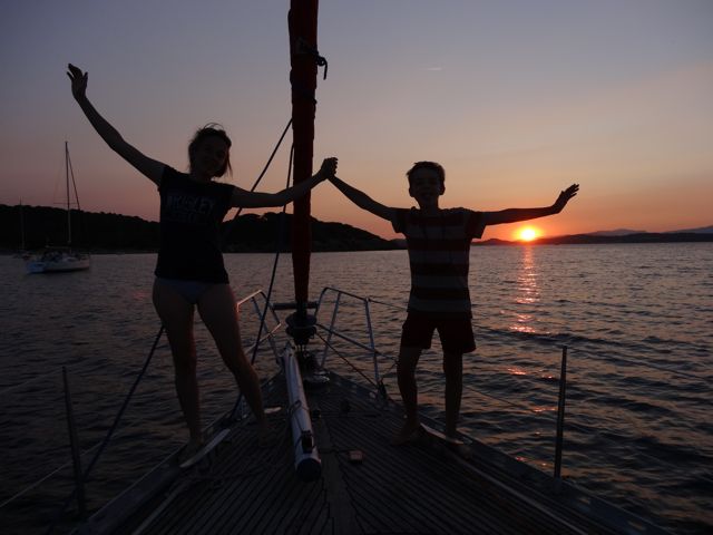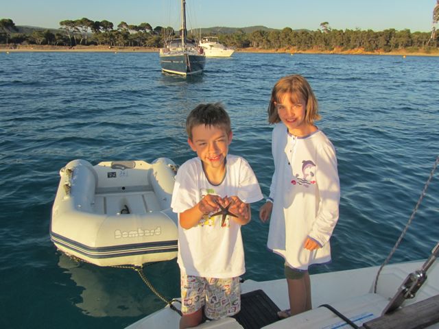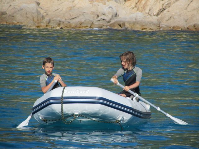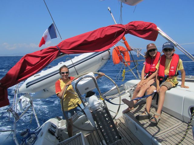Premier essai en famille (2011)La premiere fois nous étions partis sans enfant. Nous ne nous sentions pas prêts à les emmener avec nous. Mais cette fois c'est différent, les 2 grands (8 et 10 ans) viennent pour 15 jours avec nous. Les enfants prennent connaissance de ce nouveau mode de vie et s'adaptent vite. Le mieux c'est au mouillage, lorsqu'ils peuvent partir à la découverte tout seuls avec l'annexe ! Lucie nous rejoint 2-3 jours avec les grands-parents.