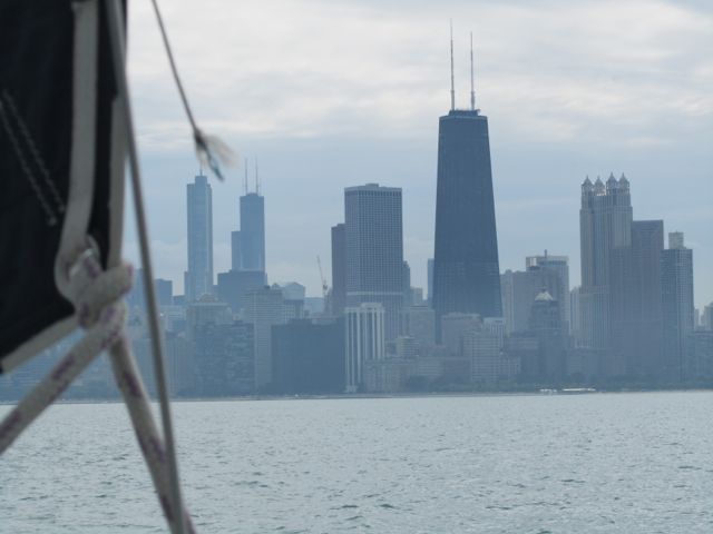 Sur le lac MichiganNous tentons quelques sorties sur le lac Michigan. Certains jours, le lac est tellement agité qu'il vaut mieux rester à terre... Le centre ville de Chicago vu du lac, c'est tout de même chouette !