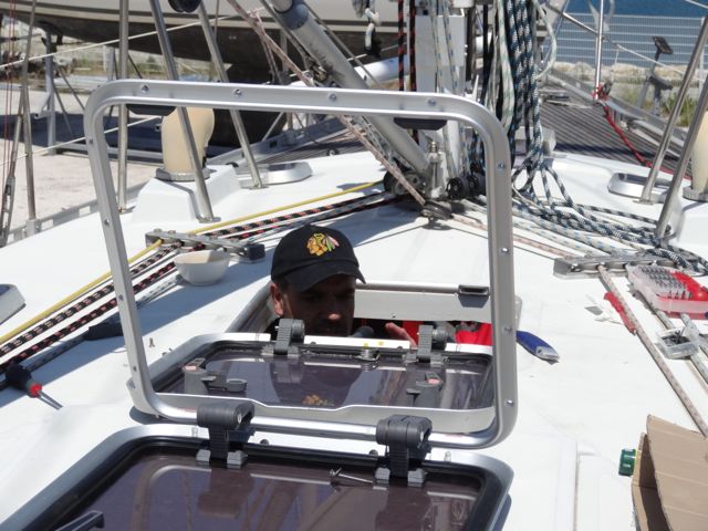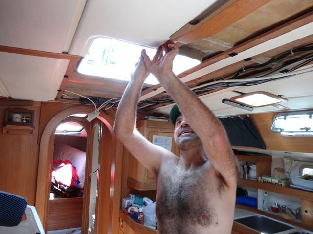 Entre autres au milieu de tout le bazar : changer des panneaux de ponts, des joints de hublots, mettre à jour le matériel de cuisine, changer lampes et LED, s'attaquer au polish de la coque...