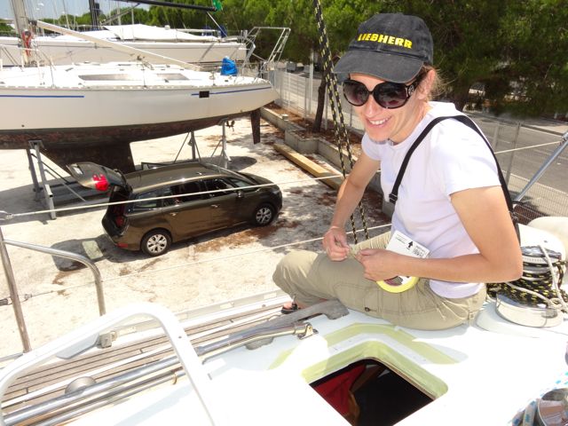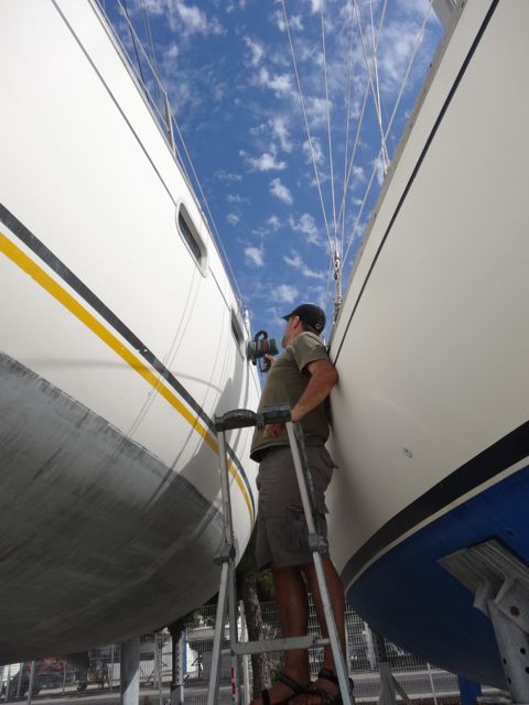 Et heureusement que les parents viennent nous donner un dernier coup de mains pour les grosses courses et les derniers bricolages (capot de survie, support du moteur d'annexe, gelcoat...).