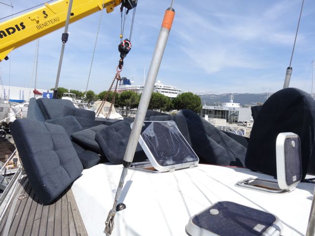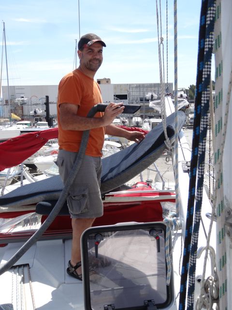 Avec la location d'un aspirateur industriel nous aspirons tout le bateau ainsi que tous les coussins... et c'est qu'il y en a des coussins !!! Ensuite c'est le jeu du casse-tête pour remettre chaque coussin à sa place !