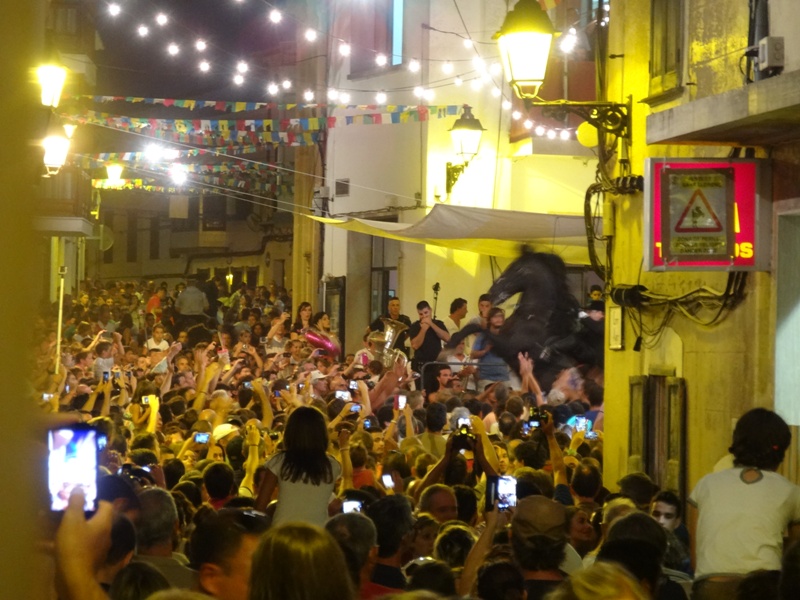 Nous avons la possibilité de rencontrer de la famille de nos amis de Chicago. Cela nous permet d’assister le soir la fête dans un des villages du coin, Alaior oú des cavaliers font se dresser leurs chevaux sur 2 pattes en pleine rue au milieu de la foule. On nous a bien prévenu de ne pas trop s’approcher avec les enfants. Cela nous change de l'organisation très cadrée des Etats-Unis !