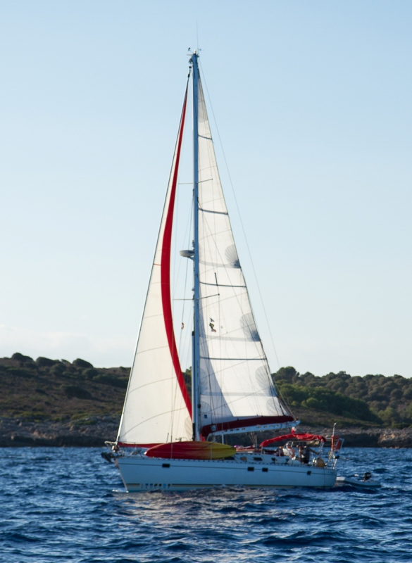 C’est ensuite la traversée vers Majorque, 15 à 20 nœuds de vent nous permettent de filer rapidement sous spi.