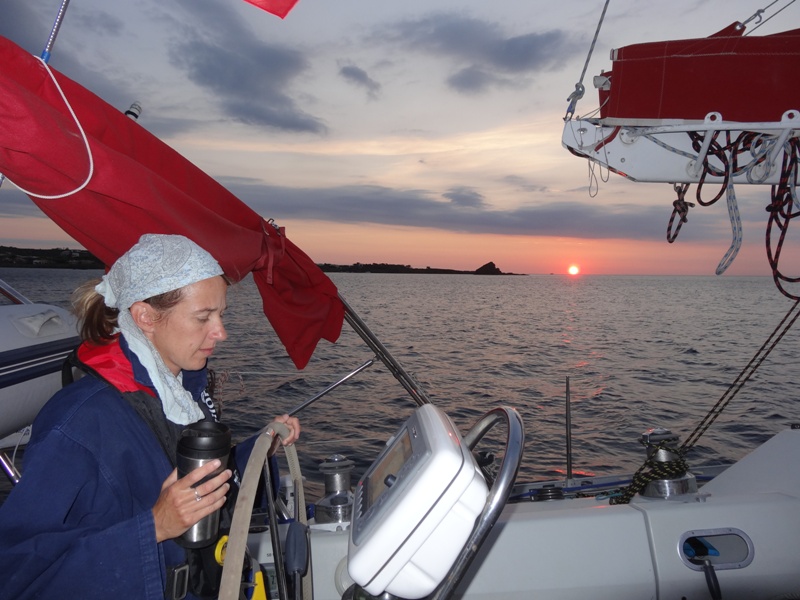 Environ 26 heures de navigation. Les quarts sont organisés (22h-2h Loïc, 2h-6h Lolo). C'est notre première navigation de nuit, un peu de stress et d'excitation ! Personne ne dort de façon détendue (entre les bruits, le fait de savoir qu'il y en a un tout seul dehors...), en plus vers 2h du matin une houle courte et creuse nous accompagne, tout le monde se lève plusieurs fois. La fin de la nav est rude et c’est bien fatigués mais contents que nous arrivons à Fornells.