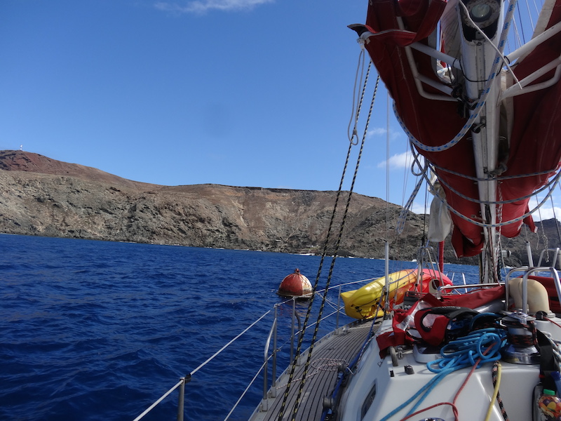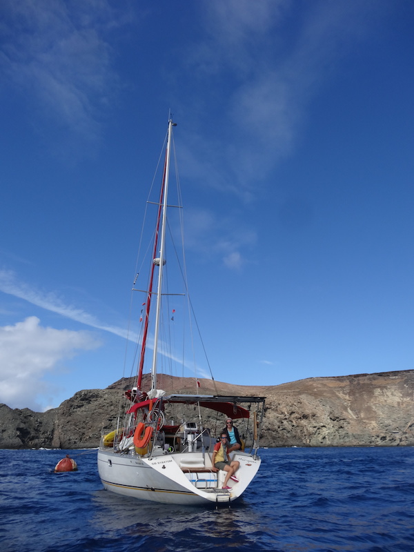 Vendredi 03 octobre 2014, en début d'après-midi, nous partons pour les Iles Désertes visibles depuis Madère. Avec 15 Noeuds de vent de travers, nous arrivons en 3 petites heures. Cependant, au bord des îles ça souffle et il y a de la houle, on se demande si le petit mouillage sera abrité... Peut-être vaut-il mieux suivre la route et continuer... Mais cela veut dire que nous repartons pour 24h au moins... Maël veut tout de même faire un tour vers le mouillage. Bon d'accord... Et finalement le petit mouillage semble protégé de la houle et un peu des rafales. Tout le monde vote pour faire une halte ici ! Youhouhou !!!!