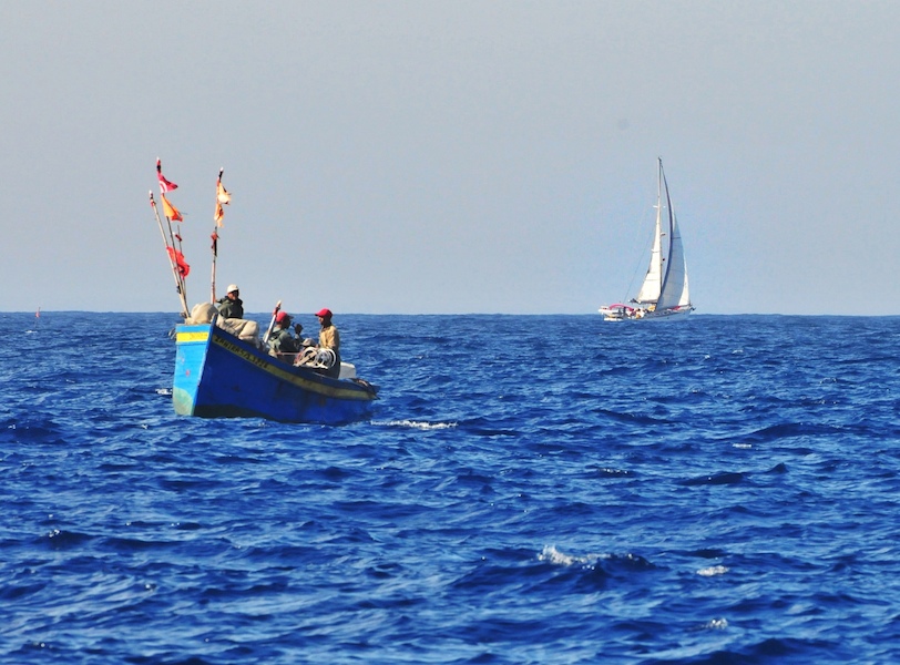 Et comme le vent diminue nettement, nous finissons la dernière partie au moteur (presque panne de gasoil... heureusement les bidons de réserve sont là pour quelque chose !) et du coup on peut faire une trajectoire plus directe.