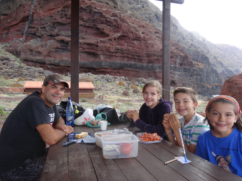 Nous pique-niquons sur l'île : ca fait du bien quand ça ne bouge pas quand même !!!! Et les gardiens nous offrent le café et nous papotons un moment avec eux.