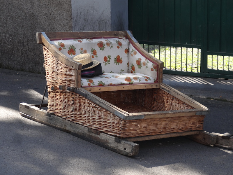 Puis nous craquons pour la descente en luge en panier d'osier typique. Ce moyen de transport date des années 1850, cette luge en bois est poussée par des canotiers qui utilisent des chaussures spéciales avec une énorme semelle en caoutchouc pour freiner dans l'impressionnante descente.