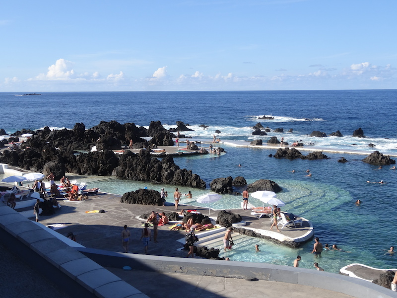 Nous terminons notre journée par une baignade bien originale à Porto Moniz dans les piscines semi-naturelles entourées de roches volcaniques et remplie d'eau par la marée!