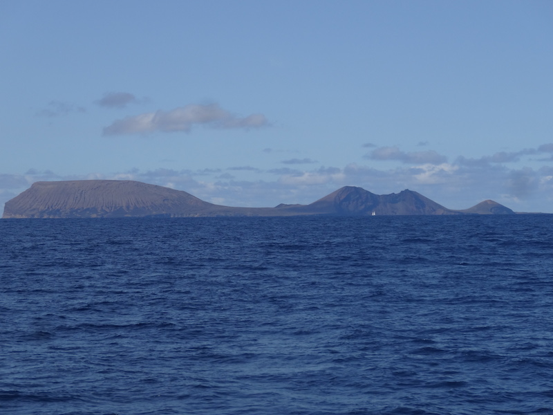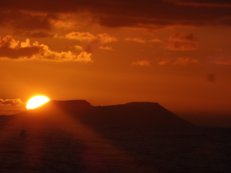 Nous mouillons en fin de matinée devant Alegranza. Cette île, la plus au nord-est de l'archipel des Canaries, est, elle aussi déserte. Elle est située en face d'un magnifique cône volcanique. L'endroit est très joli mais il est difficile d'y débarquer car cela déferle beaucoup, et il y a aussi peu de chemins pour se promener.