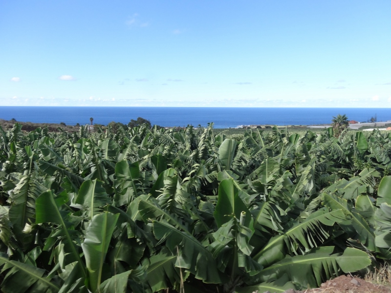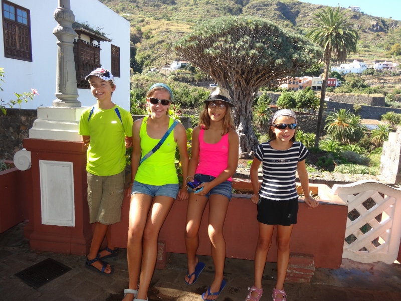 Nous partons explorer les villages plus à l'ouest de l'île. Nous admirons un dragonnier millénaire (cet arbre des îles donnant la couleur rouge), longeons les bananeraies, visitons les petits villages typiques et terminons à la "playa negra" tout à l'ouest, avant de rentrer par une petite route qui sillonne jusqu'au pied du Teide.