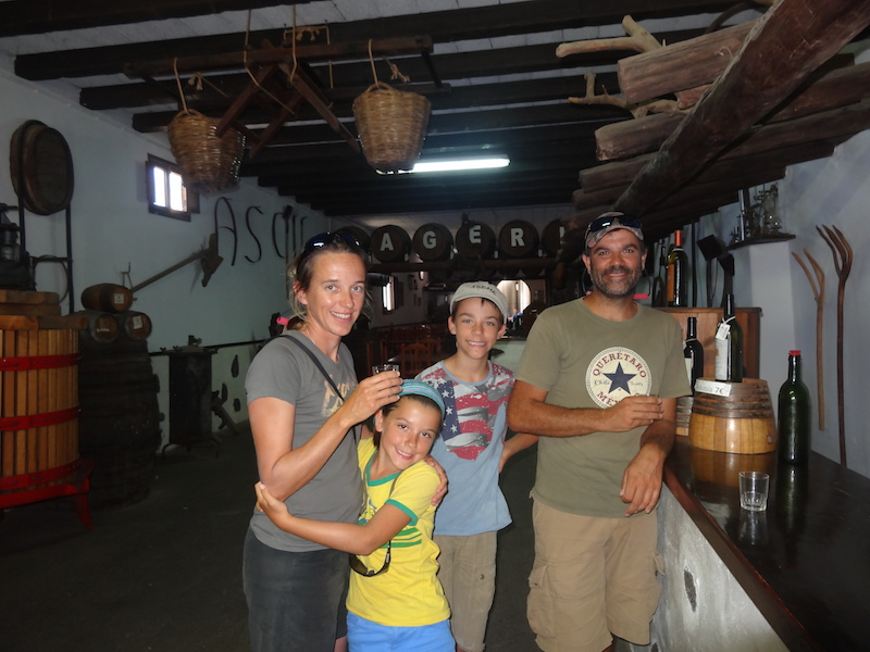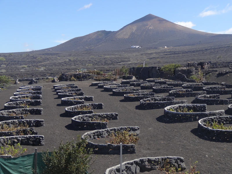 Une halte dans une bodega où nous goutons les vins de l'île. La culture de la vigne n'est pas si facile sur cette île volcanique. Il faut creuser un trou pour atteindre la terre sous la lave puis la proteger du vent et garder les pierres volcaniques qui font couler la rosée ou les rares pluies vers les racines.