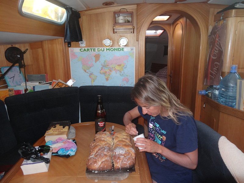 Vendredi 10 octobre nous partons pour Isla Graciosa. Au mouillage à Bahia del Solado l'ancre a du mal à mordre mais finalement nous réussissons à nous installer. Durant le souper, l'odeur de la brioche nous chatouille les papilles et nous décidons d'en prendre pour notre dessert !