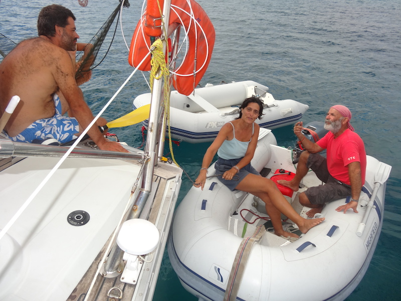 En milieu d'après-midi, Yann, Flo-flo et Aïnhoa nous rejoignent pour passer une semaine avec nous. Ils arrivent chargés avec une voile et les mille et unes petites choses que nous leur avions demandé d'apporter.