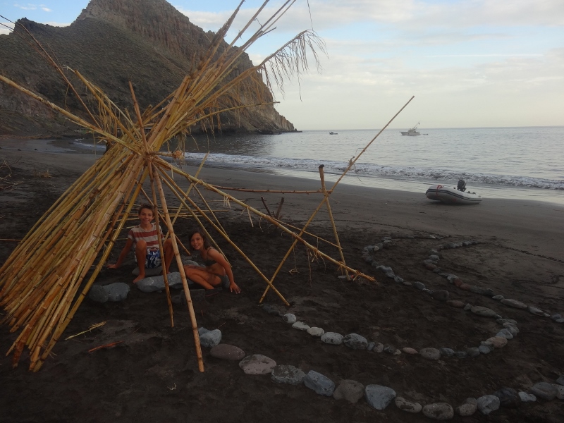 Nous y passons 3 nuits. Nous goûtons 2 oursins pêchés par Maël et Loïc. Les enfants se baignent, jouent sur la plage et observent les poissons.