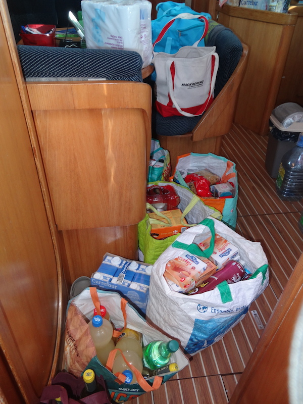 Aprés le départ de nos visiteurs, nous restons encore 2 jours à la marina de Santa Cruz histoire de ranger un peu le bateau, mettre à jour les lessives, faire les grosses courses avant... notre prochaine grande traversée. Merci à Carrefour de nous livrer nos courses... jusque devant le bateau ! C'est que l'eau, les jus de fruits, les pâtes, la farine, le sucre... ça pèse lourd !!!