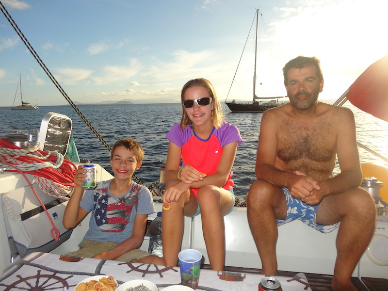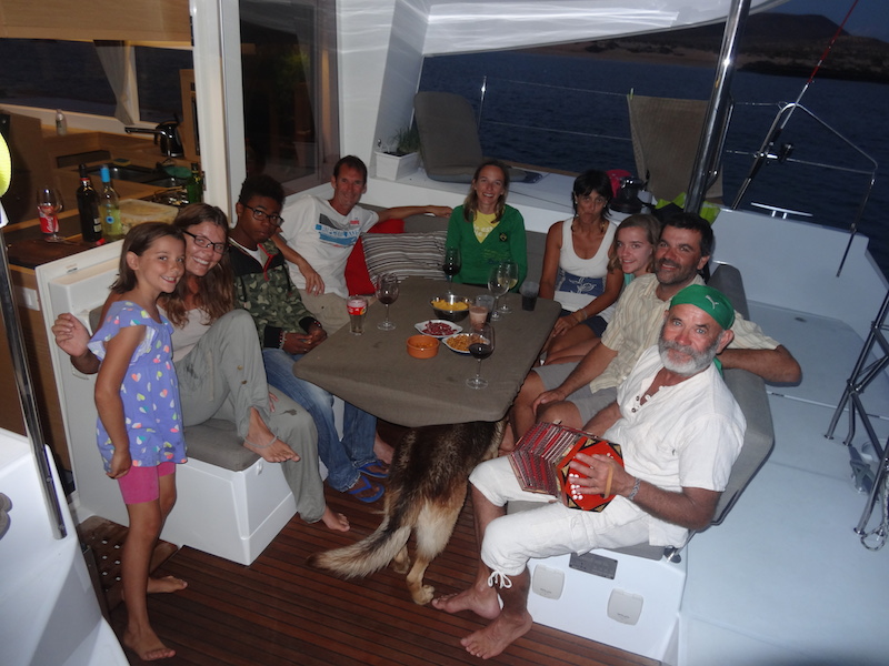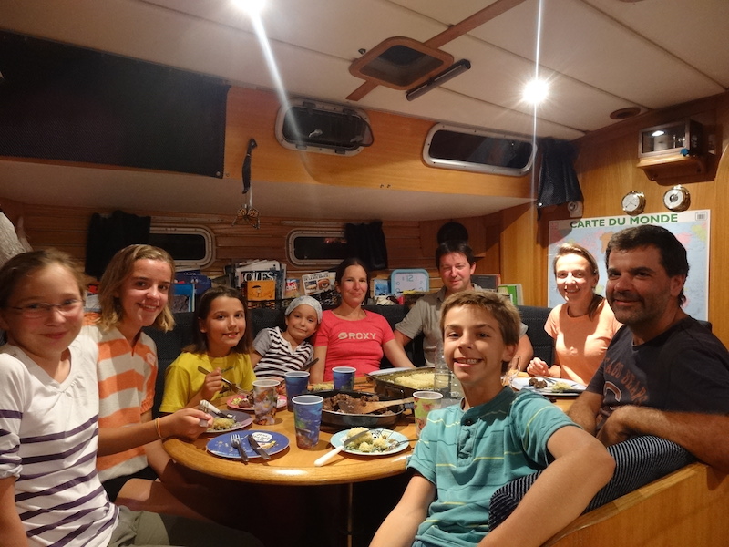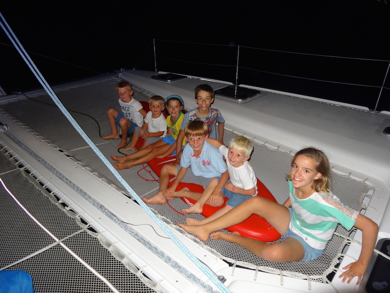 Le lendemain soir nous sommes invités à prendre l'apéro sur leur cata Vaa Nui avec Sephina. Les enfants sont contents de trouver des copains. Et 7 d'un coup: quelle ambiance !