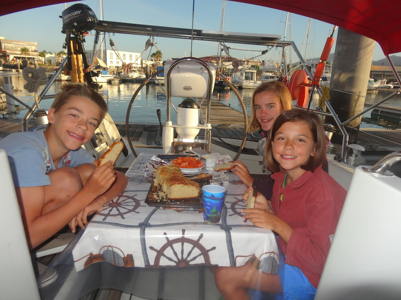 Après un peu d'école, un dernier plongeon dans la piscine avec les petits copains, un repas de midi chaud, un ordi réparé, un plein de gasoil, nous quittons la marina de Rubicòn.
