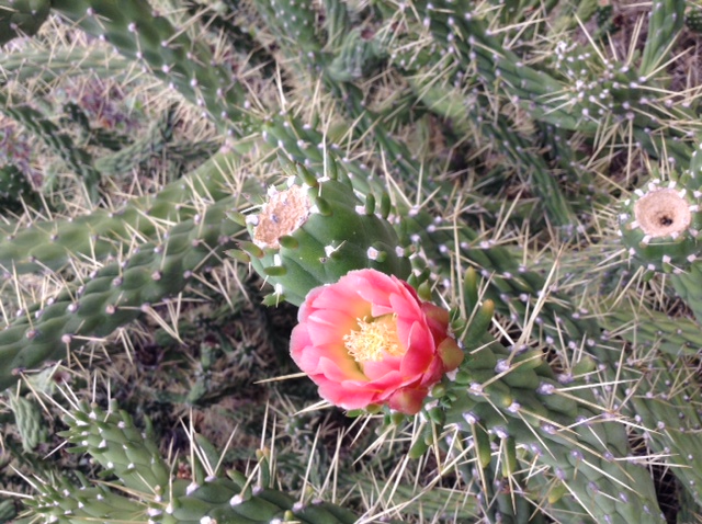 C'est rigolo : quelques géraniums poussent au pied des volcans.