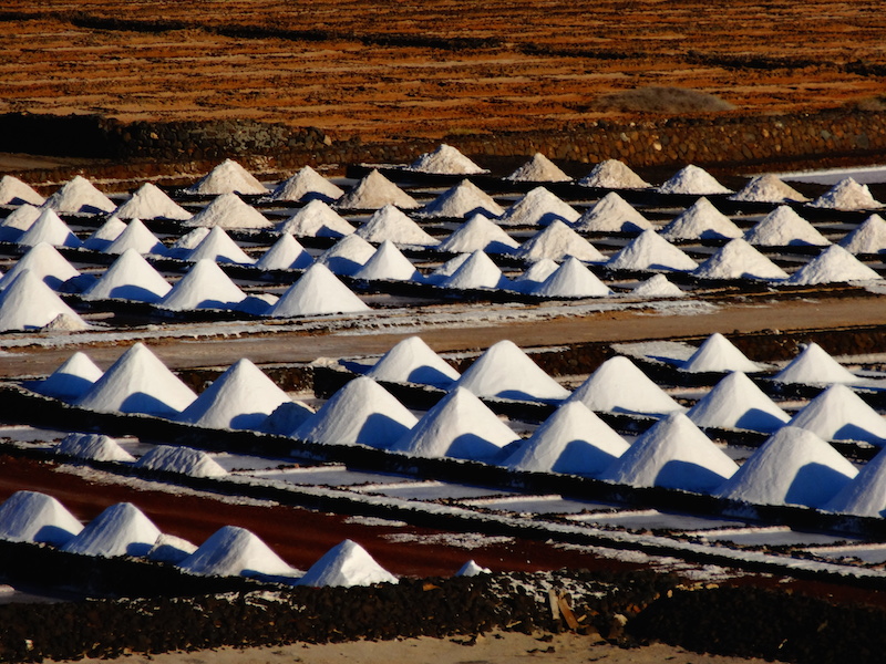 Puis nous continuons le long de la côte sauvage jusqu'aux salines de Janubio avec ses énormes tas de sel.