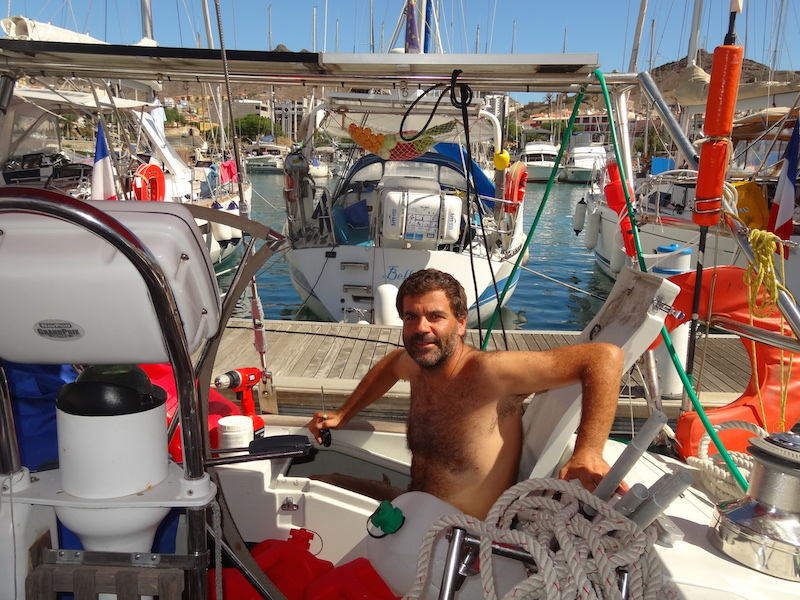Les gens s'affairent, bricolent, montent au mat, discutent avec un mécano... Il y a des sacs de voiles qui circulent, de grosses bouteilles d'eau qui s'accumulent, des sacs chargés de lourdes provisions en prévision d'une longue traversée...