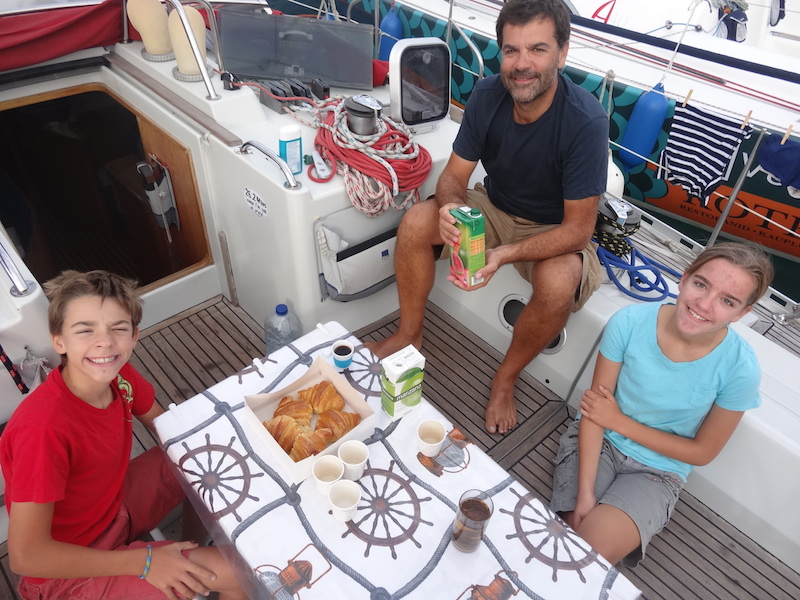 Jacqueline et Terry nous racontent leur traversée à 7. Ils ont un rythme dense avec sorties et repas d'organisés pour l'ARC. Ils repartent le mercredi pour les Antilles. Donc pas de temps à perdre. Ils arrivent quand même à venir prendre un petit apéro chez nous avant leur grand départ. C'est sympa !