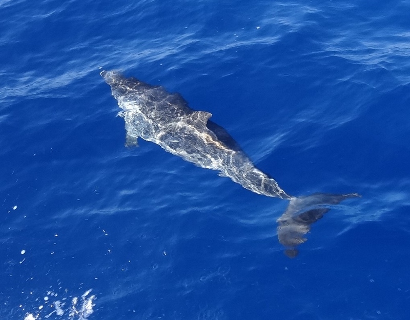 Direction donc le Cap Vert. Avec 820 MN à parcourir, nous pensons mettre 7 ou 8 jours. A peine sortis du port, il y a bien 30 noeuds de vent au sud de Tenerife, cela remue pas mal, nous prenons 2 ris, déroulons le génois et cap sur Mindelo. Heureusement au bout de quelques heures tout se calme...
