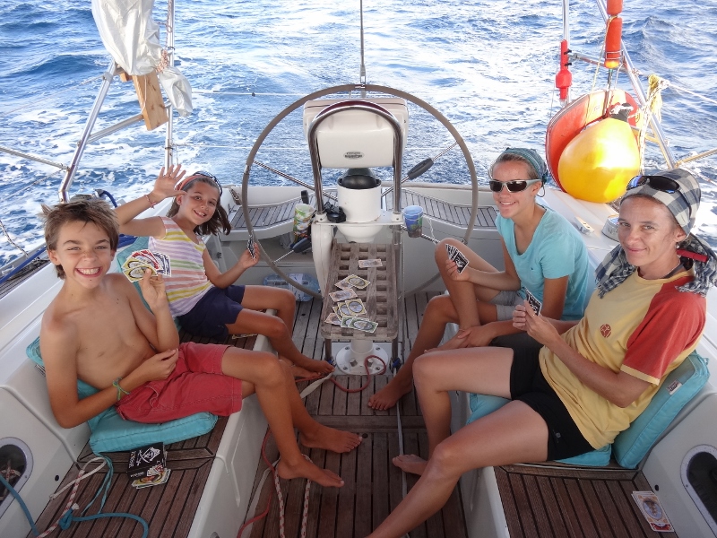 Pendant ce temps, les enfants en profitent pour jouer encore un peu avec leurs copains de ponton. Ils se sont trouvés une sacrée bande de copains pour jouer aux cartes ou aller se balader.