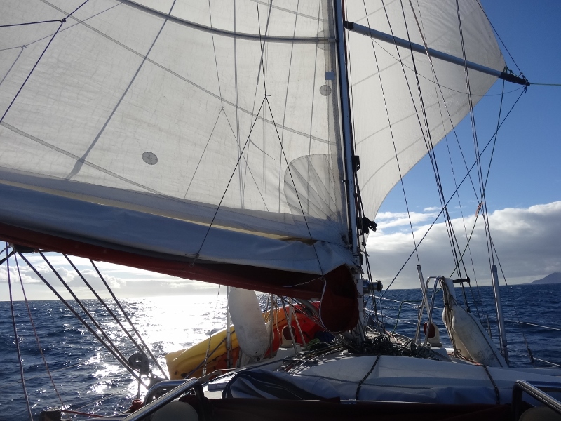 Nous hissons la grand voile puis déroulons le génois. Nous suivons et discutons avec 44.com sur le canal 68 de la VHF pour savoir comment se passe leur départ. Au bout de quelques heures Maël et Tristan commencent même une bataille navale !
