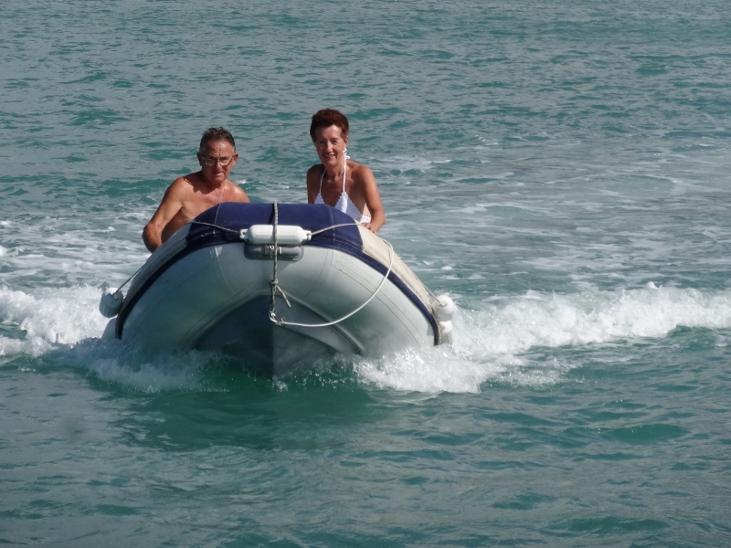 Jack et Françoise sur Quincy III qui étaient au mouillage, nous rejoignent en annexe pour un dernier coucou !