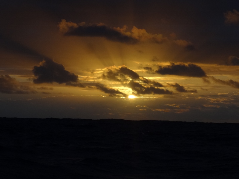 Au début nous croisons quelques cargos, mais vite nous nous sentons seuls... Rien que la mer à l'horizon et plus personne sur la VHF !