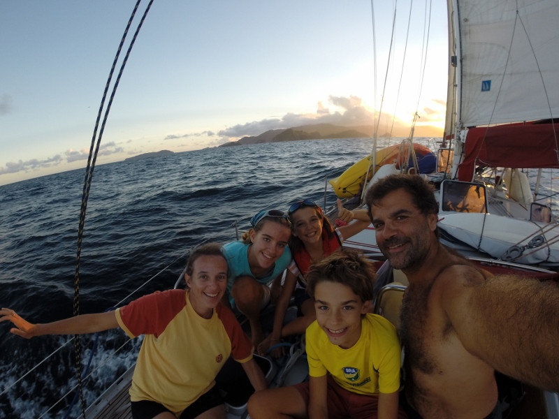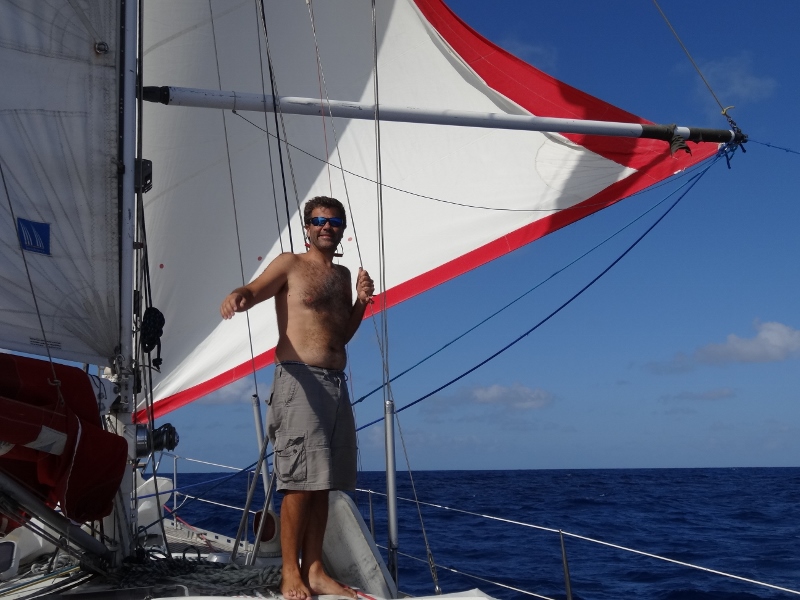 Durant la traversée le vent nous a finalement bien poussé et le bateau en ciseaux avec le genois tangonné nous a permis d'avancer assez vite. Finalement c'est au bout de 2 semaines tout rond que nous apercevons la terre !!! Youhouhou !!! Tobago en vue !