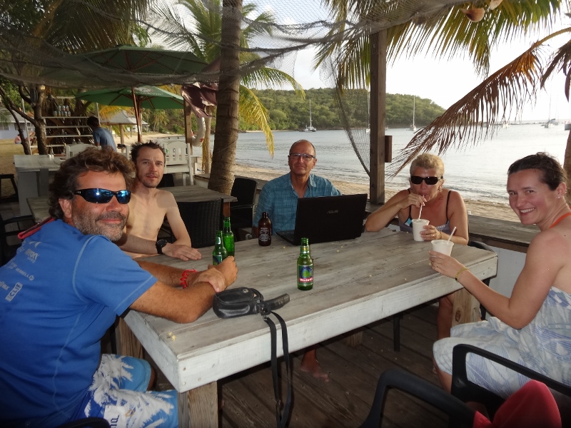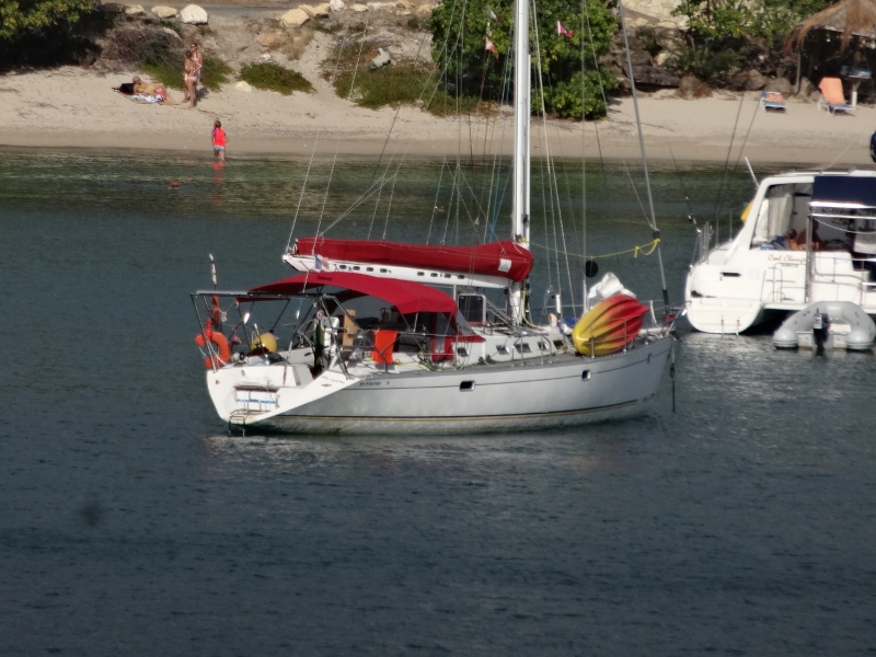De retour à Deshaies, nous passons une soirée avec Sev'On Seas. Au moment où ils s'apprêtent à rejoindre son catamaran, nous remarquons que notre annexe a disparu !!! Quelle mauvaise blague, sans annexe cela devient difficile, voire impossible, de descendre à terre et de faire des courses !