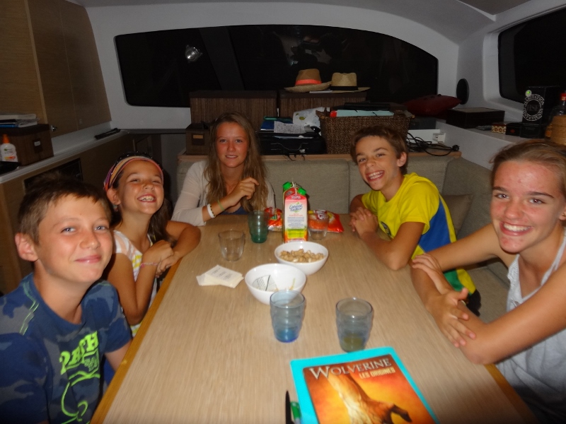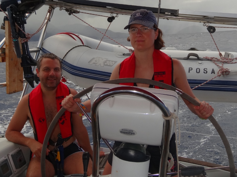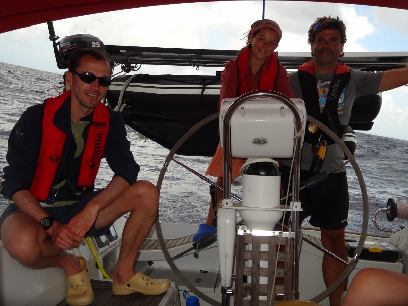 Cette fois, Yann, Flo-flo et Aïnhoa nous accompagnent pour la navigation Dominique-Guadeloupe. Apparemment pour eux, malgré les quelques grains, la navigation est plus agréable, même si plus longue, qu'avec la navette.