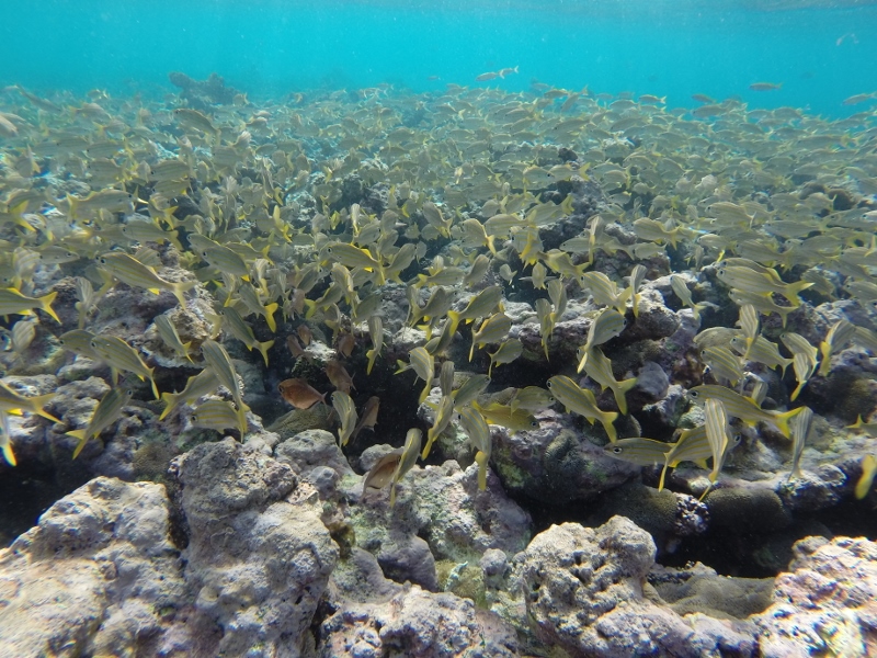 Entre la petite île sauvage et l'observation des petits poissons, nous passons un agréable moment.
