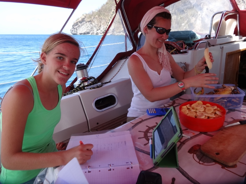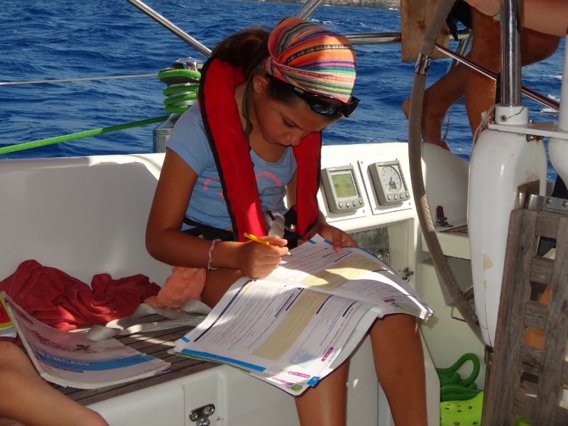 Au port, nous en profitons pour faire des lessives à la laverie du coin et bien sûr il y a l'école journalière.