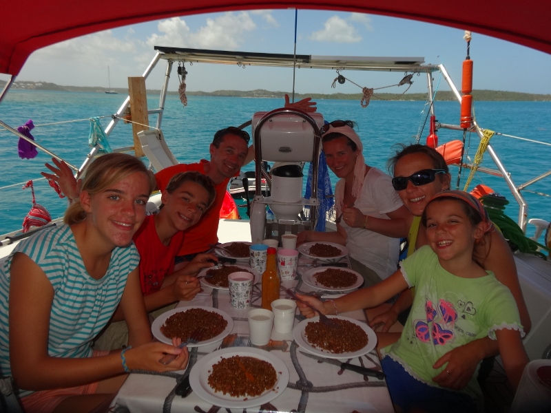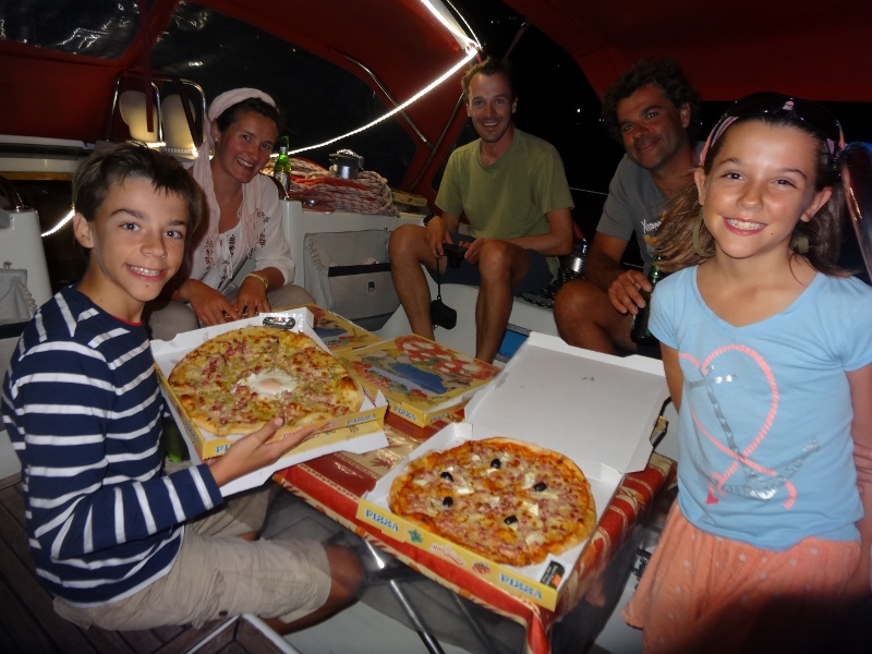 A 16h, tout le monde est bien content d'être arrivé et nous refaisons un bon casse-croûte avec une délicieuse noix de jambon ! (durant la navigation, tous les estomacs n'étaient pas "détendus" pour le casse croûte)