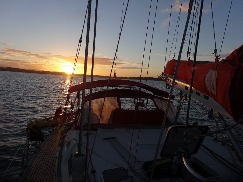 Finalement Vincent reste en veille sur le cockpit 1h ou 2 jusqu'au petit matin. Nous ne dormons pas bien... Vers 5h30 on se fait couler un petit café, et nous constatons que quasiment sur tous les bateaux, il y a du monde de réveillé !