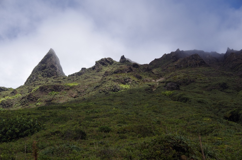 C'est là que les hommes ainsi que Lucie (!) partent pour l'ascension de la Souffrière couverte de brouillard.