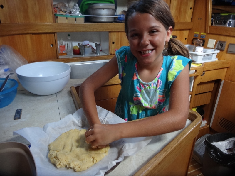 Les enfants jouent beaucoup, font de la patisserie, sautent dans l'eau, ramassent des coquillages, sont sur un bateau puis l'autre, même pour dormir !