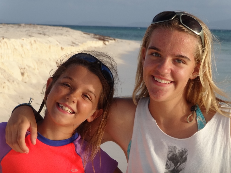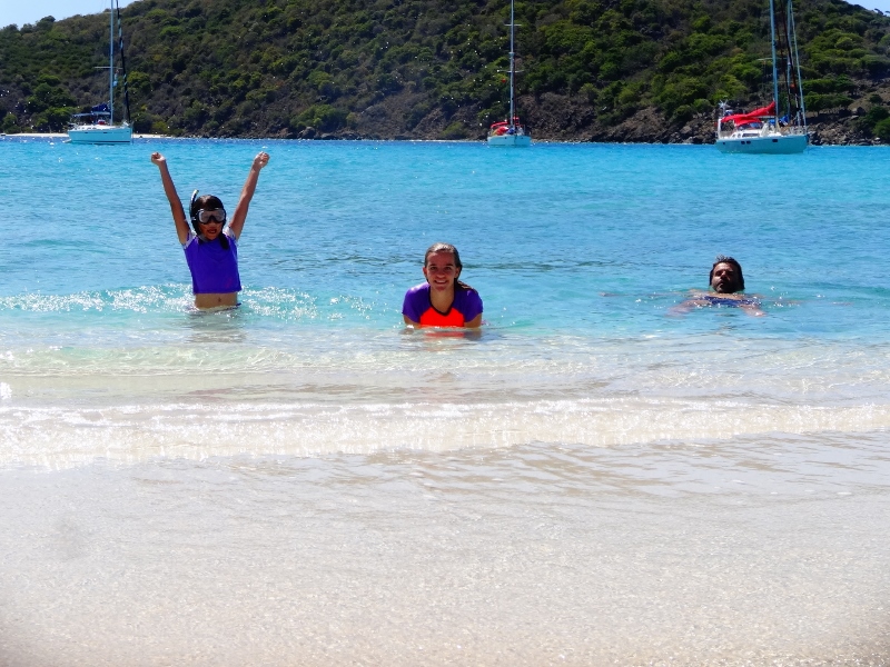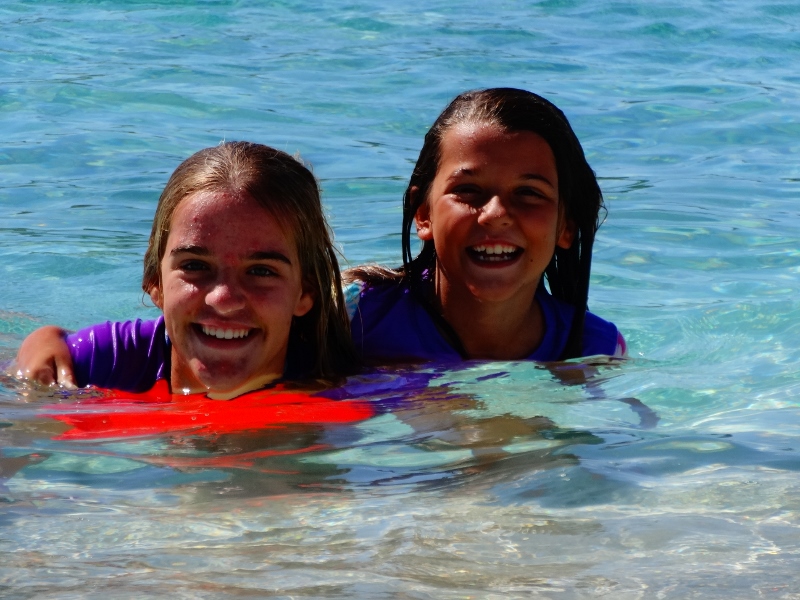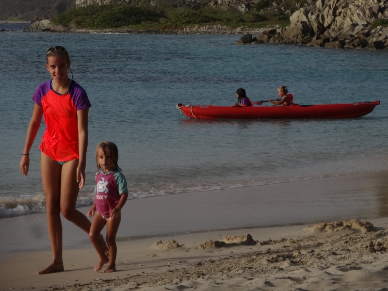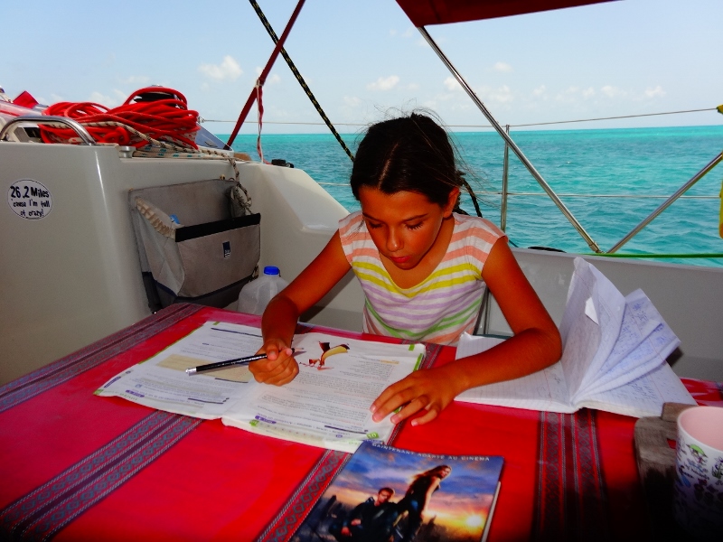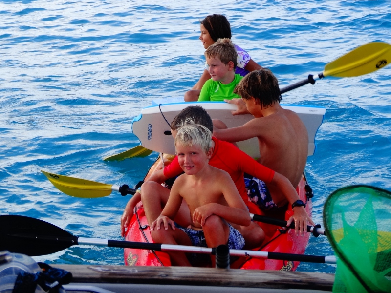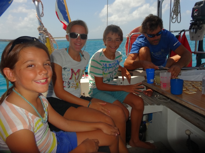 Les enfants ont fini le Cned. Ils bricolent, lisent et surtout profitent une dernière fois de l'eau des Caraïbes (aux Açores elle sera plus fraîche !).