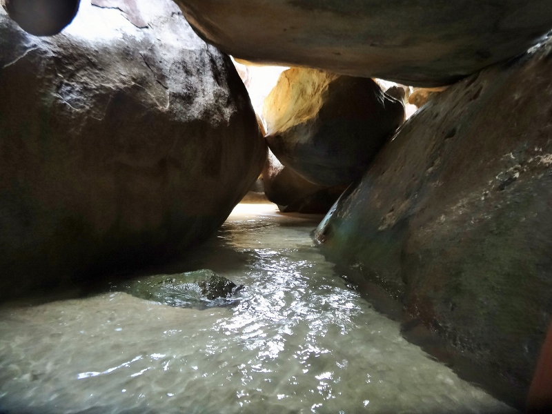 Départ tôt vers 6h30 pour visiter les "Baths", ce parc naturel formé d'immenses blocs de granit en bord de mer, formant ainsi des petites piscines naturelles. Le site est très connu donc pour éviter le monde, mieux vaut y aller tôt. Et effectivement en arrivant à 7h00 nous sommes seuls !