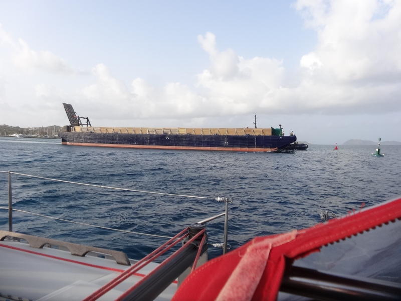 Puis nous redescendons devant Spanish Town. Ce n'est pas le mouillage le plus agréable (beaucoup de va-et-vient de navettes et barges) mais c'est bien pratique pour se ré-avitailler avant l'arrivée des copains.