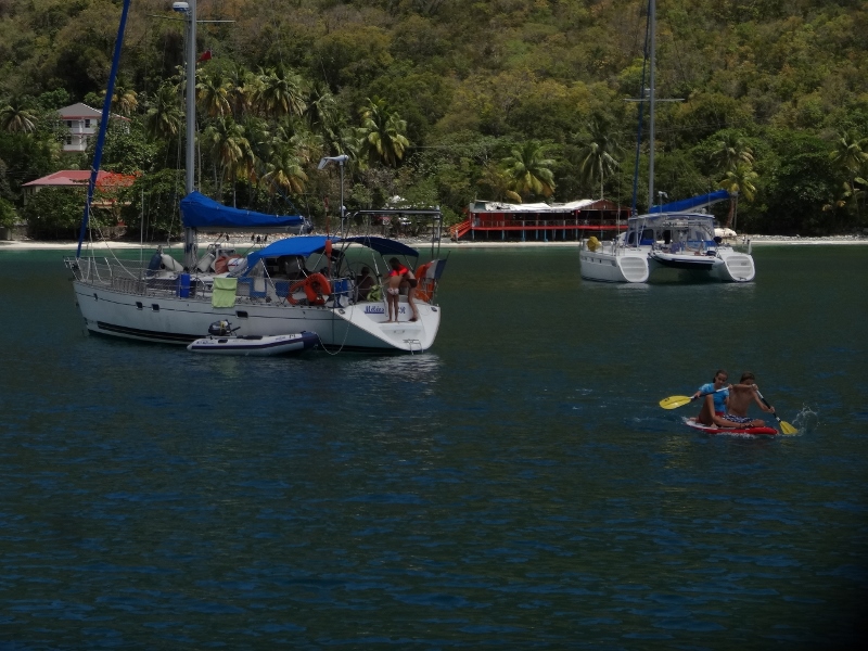 A St Martin, nous restons quelques jours au mouillage dans la baie de Marigot.