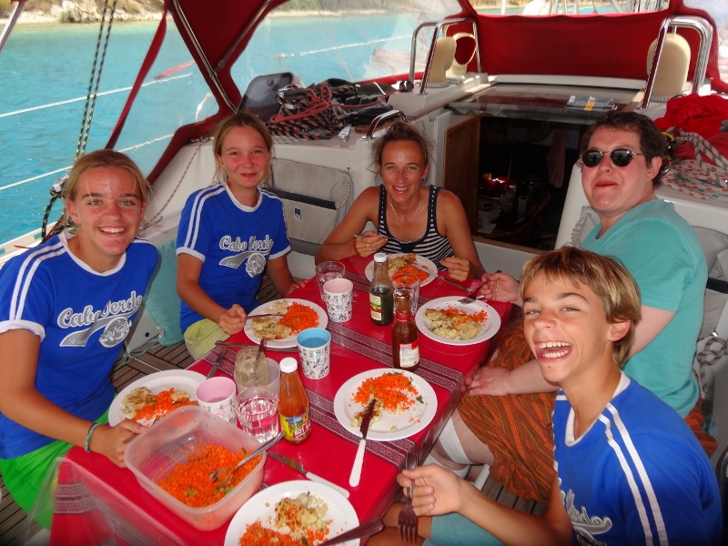Le dernier soir au mouillage est l'occasion d'un bon barbecue avec Méléos bien sûr ainsi qu'avec Annie et Olivier d'Eoliane.