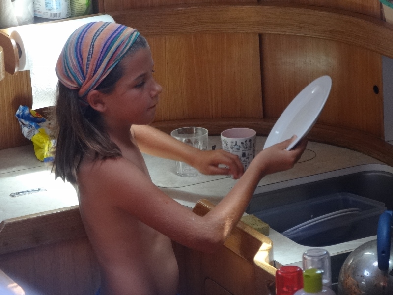 Au programme : lessive (et il y en a !!!), déposer Flo, racheter des bidons pour stocker un peu plus de gasoil (en cas de pétole), faire quelques premières courses, acheter des livres pour les enfants, ranger les chambres, caréner(tout le monde participe au grattage des algues rouges cette fois)...