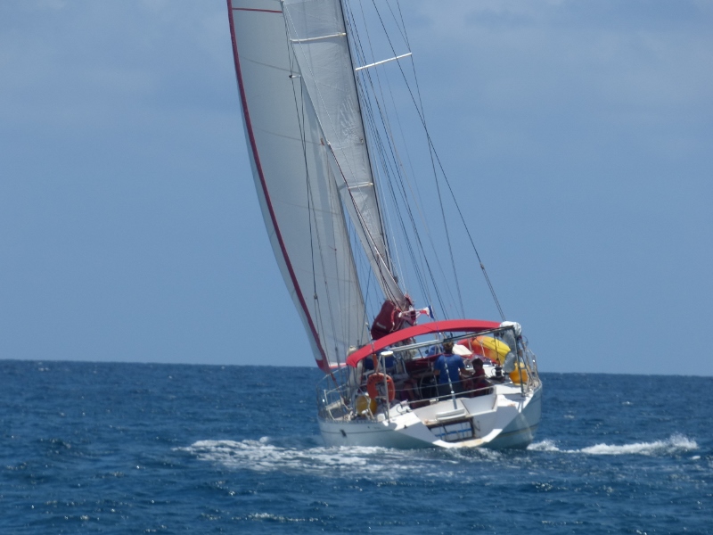 Puis ca y est, il est 11:00, c'est l'heure de débrancher l'eau, l'électricité et de larguer les amarres et suivre Méléos. Nous disons au revoir à Catherine qui elle rentre en avion, Eric (le papa de Marine) participe à la transat sur Méléos. Malgré un faux départ pour Méléos (Catherine avait oublié son téléphone à bord de Méléos), nous quittons les eaux turquoises sous un beau soleil.
