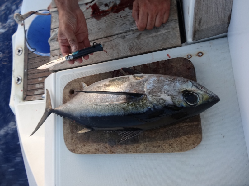 Ah j'oubliais, le premier jour nous avons pêché une belle bonite de 65cm qui a fini en tartare. Miam, miam ! Il faut dire que depuis la transat aller nous n'avions plus rien attrapé à part de la sargasse...