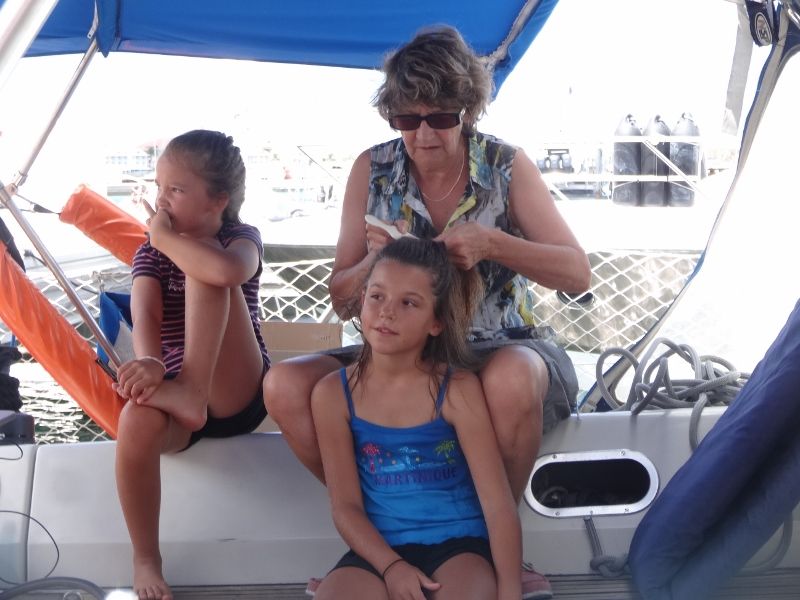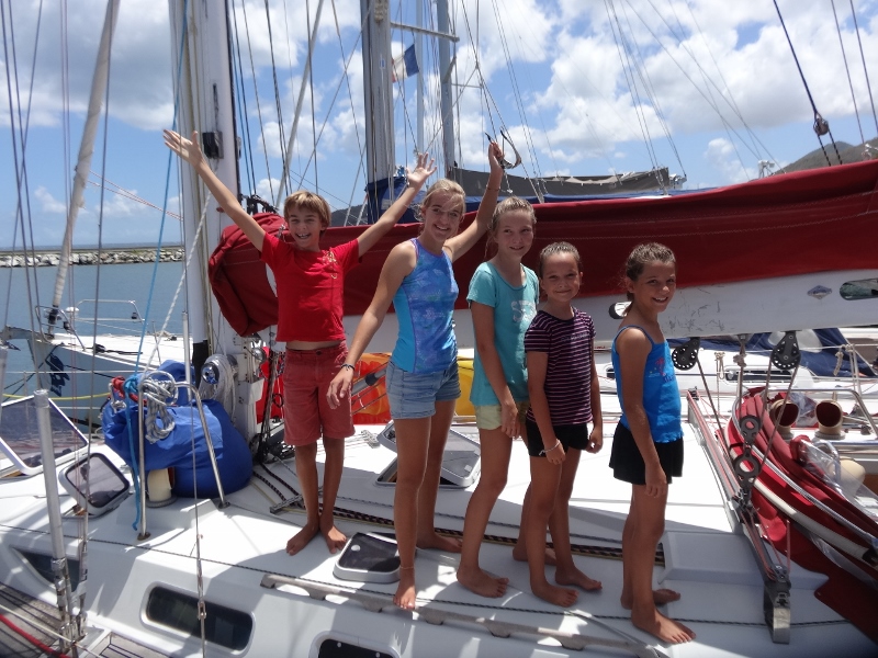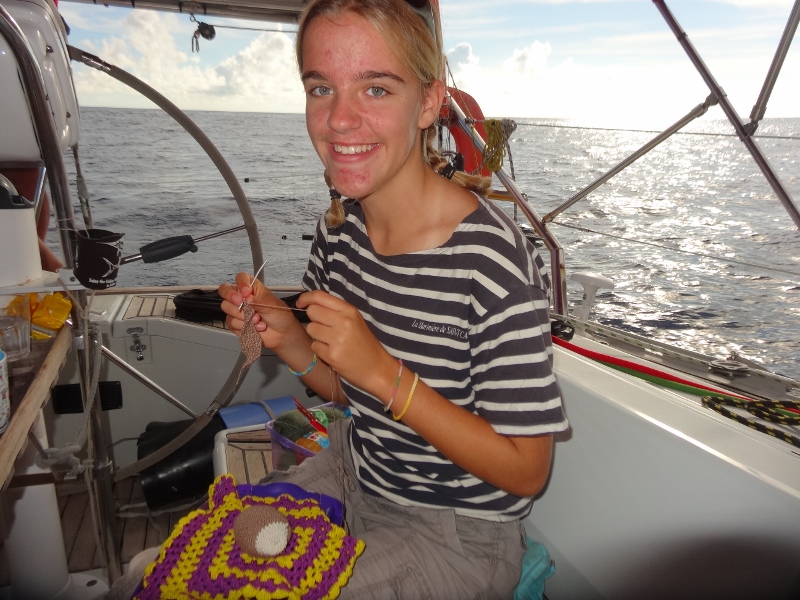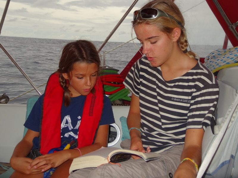 Lors de moments plus tranquilles, nous en profitons pour lire. C'était bien d'avoir pu faire un plein de livres à St Martin. Les enfants n'auront jamais autant lu, même Maël dévore de gros livres ! De temps en temps nous faisons quelques jeux de société (comme les petits chevaux, pour les cartes nous attendrons que le vent tombe...) ou des ateliers bracelets.