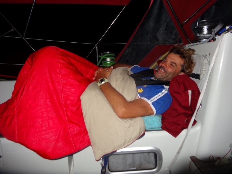 Cette première semaine nous n'avons fait que du près, allure guère agréable surtout qu'elle était accompagnée de vagues courtes. Du coup, le bateau "tapait" régulièrement. Impossible donc de dormir dans la cabine avant, l'estomac se croyait sur un trampoline ! Comme il y a de la place pour dormir sur la banquette du carré, l'un de nous s'y installe pour dormir pendant que l'autre est à l'extérieur pour son quart.